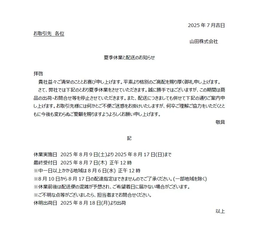 夏季休業について 夏季休業のスケジュールをお知らせします ご迷惑をお掛けします nakabayashi misakiJuly 30, 2025 Facebook0 Twitter Pinterest0 0 Likes